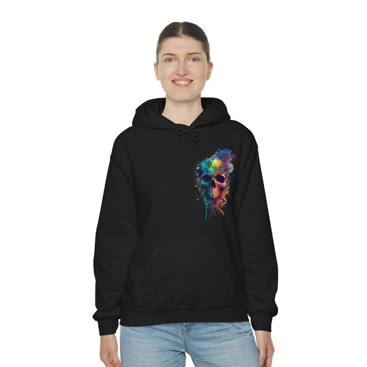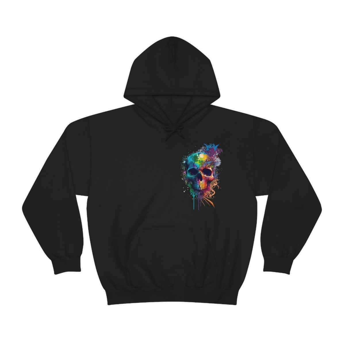 A colorful skull – our exclusive art design – highlights the front of this comfortable cotton blend hoodie.